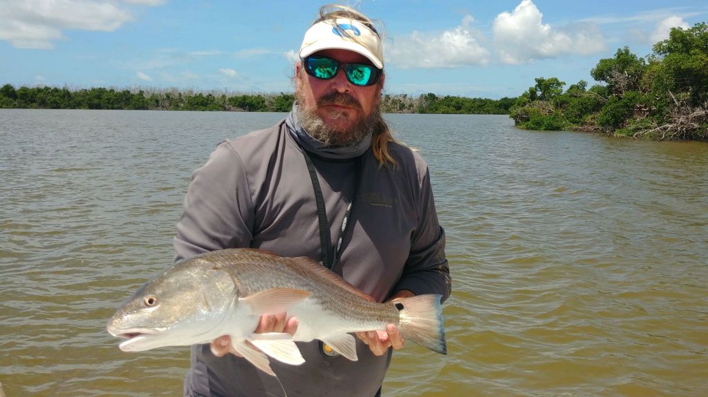 Redfish started stacting up along the mangrove banks. Here is a picture of one that I wrangled out from under a stump.
